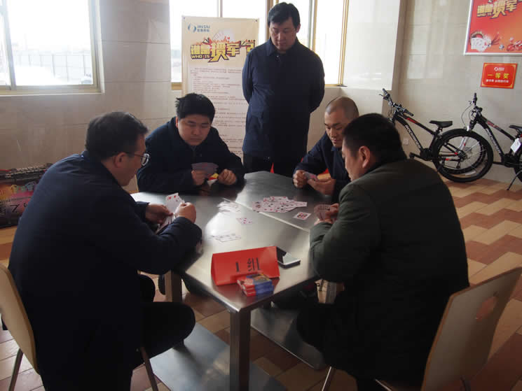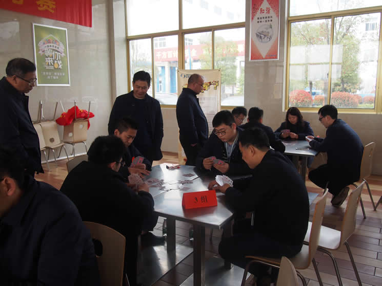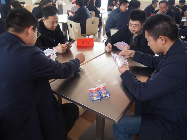 3月23日总经办后勤人员提前做好了现场布置工作,准备好奖品桌椅等,各部门参赛人员在下午纷纷到达活动现场,进行了抽签分组等赛前准备。公司总经理、副总、生技部经理、行政部门经理等作为本次掼蛋比赛的裁判员,就竞赛的要求和注意事项进行了动员。总经理办公室经理周志丹主持了此次掼蛋比赛:在春暖花开的时节,乐鱼在线注册_乐鱼(中国)公司迎来了第一季度文体活动,希望大家本着“友谊第一、比赛第二”的原则,赛出风格,赛出水平,预祝各部门选手取得好成绩。随着一声开始,比赛在紧张而欢乐气氛中拉开序幕。