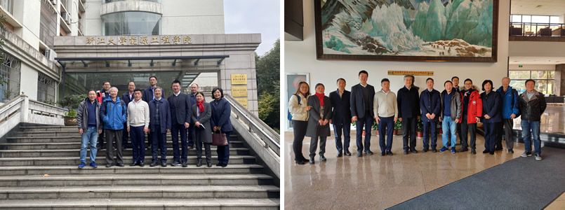2020年12月9日,在浙江大学-乐鱼在线注册_乐鱼(中国)环保“智慧工业园区能源系统联合研究中心”(以下简称联合研究中心)成立一周年之际,公司董事长顾鼎带队到浙江大学开展工作交流,总经理徐振华、副总经理王顺安等陪同交流学习。浙江大学科学技术研究院领导翁宇、能源工程学院副院长俞自涛、热工与动力系统研究所副所长钟崴等领导就联合研究中心发展与我方进行深入交流。