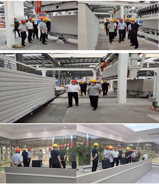 周荣来一行首站进入参观了生产现场,顾董事长和周总从现场的整体生产状况、工艺流程及相关实验室设备等多方面展开了详细的介绍与汇报。通过讲解,墙改办领导对我们新型建材公司有了更加全面的了解,并深刻感悟到新型建材公司是目前泰州地区最先进、最专业的全自动化生产线,性能稳定、品质可靠,同时对公司的产品质量及企业文化给予了充分的肯定。