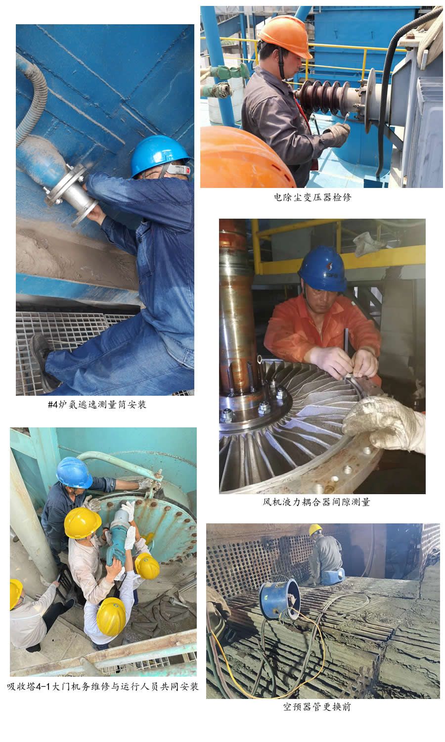 统筹计划,保工期。本次工期紧,工作量大,检修过程中还增加了较大工程量。为了能够按期完成检修任务,热电事业部统筹安排总体施工计划,提前考虑错开交叉作业,科学合理地进任务分解,坚决执行日冻结计划。同时检修一线的人们积极配合,采取了一系列有效措施:周末不休息连续工作,加班加点干活务必做到当日事当日毕,调整工作时间避开高温时段作业等。比如更换电除尘阴极线原计划用时8天,江苏蚁工为了赶工期,全部调派熟练工人且合理规划,结果只用了4天就完成了阴极线更换工作。在各层级的共同努力下,确保了#4炉总体检修进度,目前空预器检修完成90%、电除尘器检修完、布袋除尘器检修完、五大风机检修完、锅炉本体检查处理完、脱硫脱硝系统检修完成90%,完全能够实现8月20日启炉的目标。